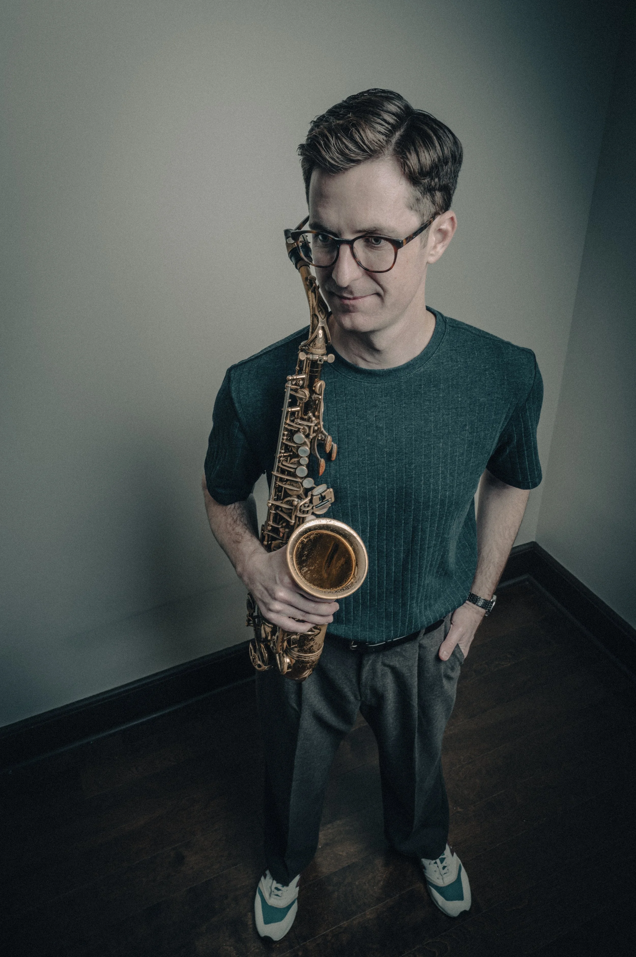 plays the saxophone,